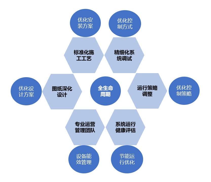 我司提供专业化团队进行项目管理,改变目前运行和维保分开的情况,加强对设备的运行过程中的专业维护管理,完成运营和维护管理的统一,这样不仅可以提升设备运行效率、节约能源消耗,同时也延长设备使用寿命,提高了系统运行的安全性。